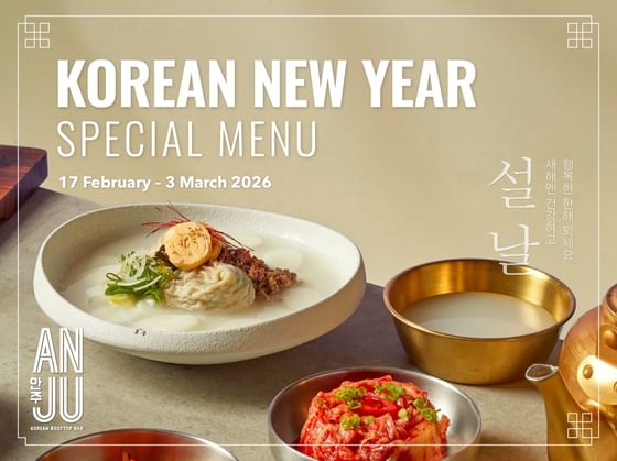 Welcome the Korean New Year with ANJU’s special Sagol Tteok Man Doo Gook, featuring Wagyu beef shank and handmade dumplings in a rich beef broth. Priced at THB 350++, available from 17 February to 3 March 2026.