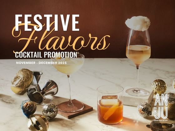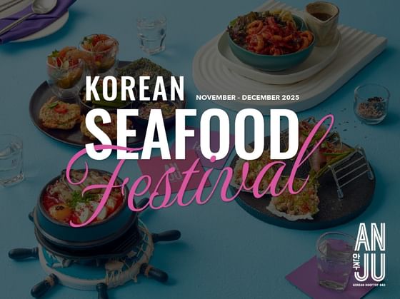 ANJU also offers a unique blend of stunning views and Korean-inspired libations. Our signature cocktails and mocktails are crafted with flavors inspired by world-renowned Korean dishes, delivering a creative twist to every sip.
