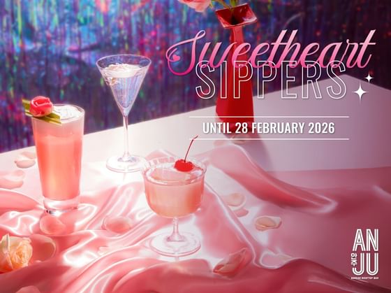 Indulge in ANJU’s Sweetheart Sippers, featuring three handcrafted cocktails that capture the essence of romance. Enjoy Love Myself, One Side Love, and Eternal Love for THB 420++ per glass throughout February 2026.