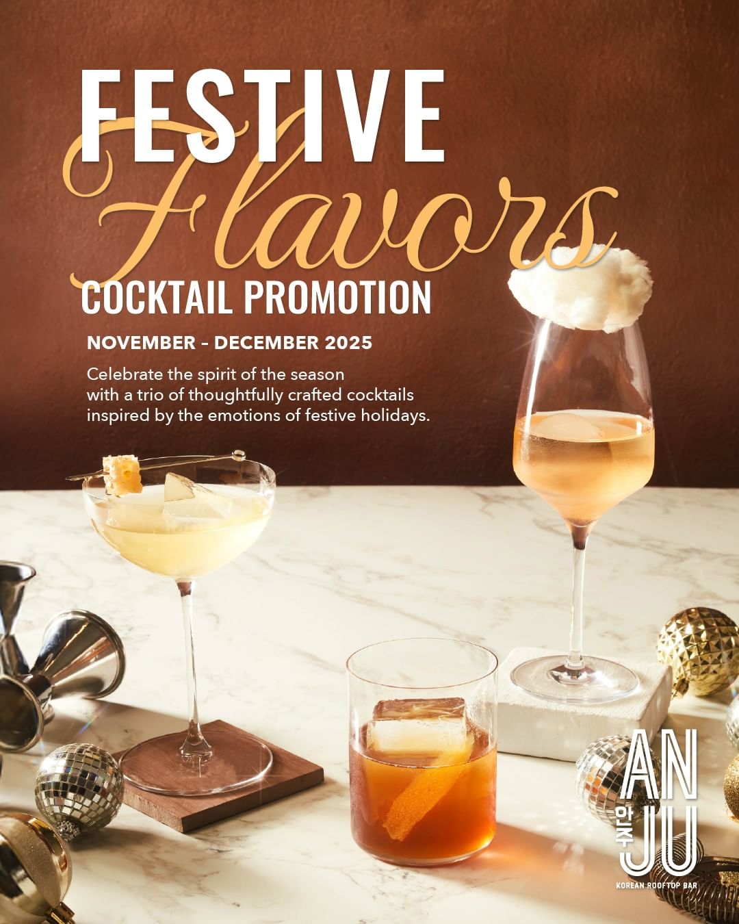 Discover the magic of the Festive Flavors Cocktail at ANJU Korean Rooftop Restaurant & Bar.