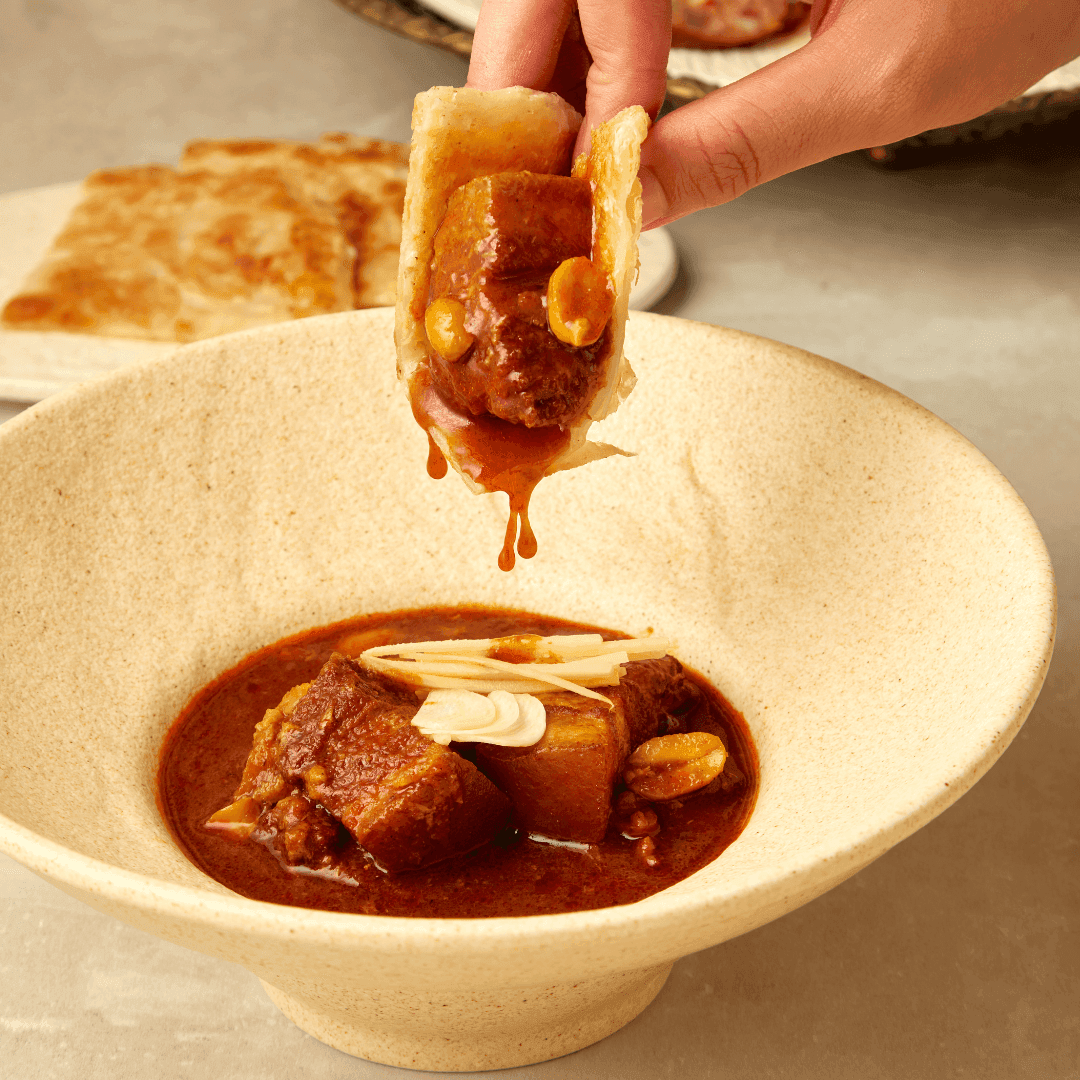 Northern Thai-style ‘Hung Lay’ pork belly curry, served with roti