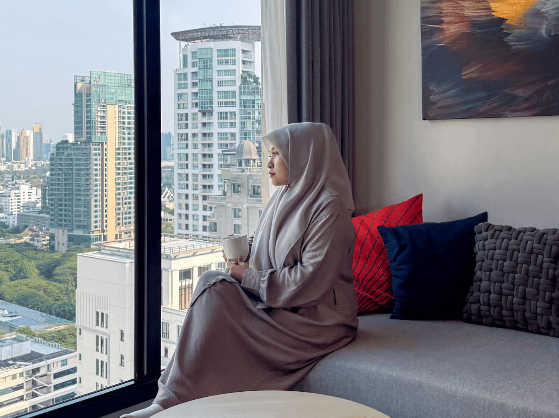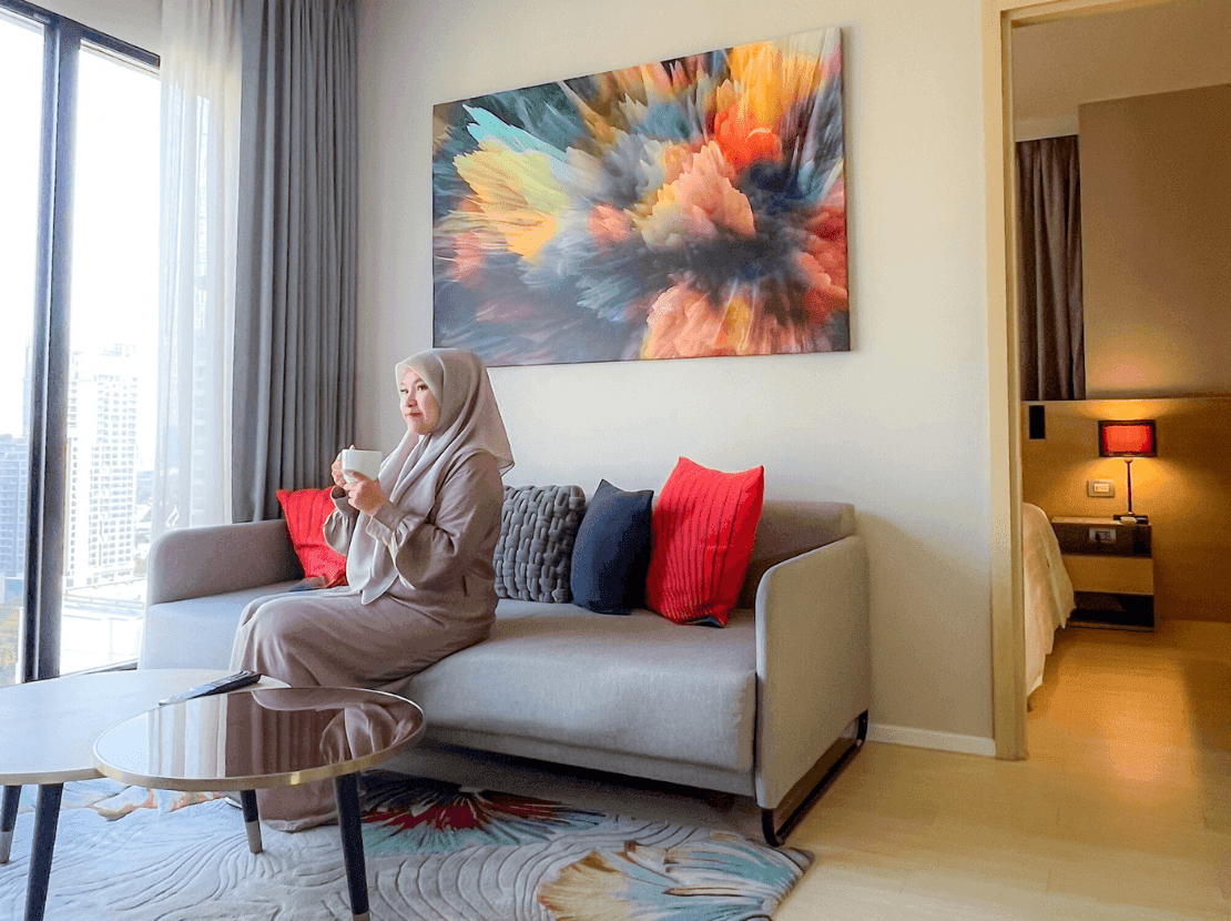 Setelah malam yang tak terlupakan di Bangkok, nikmati istirahat yang nyaman. Tempat tidur yang empuk, bantal yang lembut, dan fasilitas modern, mulai dari TV LED 49 inci, port pengisian daya USB, hingga penyaring udara. Terhubung dan bersantai.