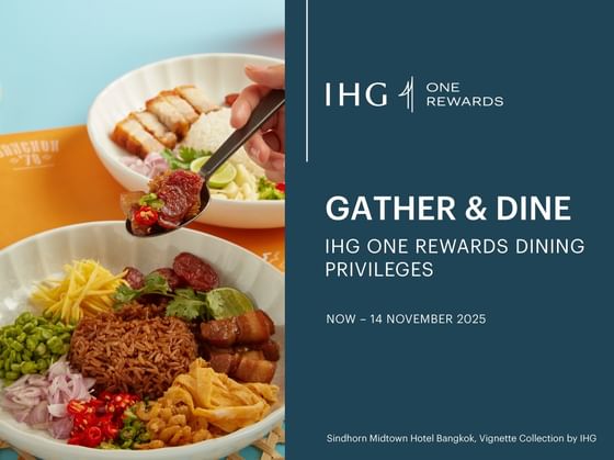 สำหรับสมาชิก IHG One Rewards เท่านั้น! รวมตัวแล้วไปอร่อยด้วยกัน ที่ร้านอาหารไทย Bangkok'78 รับฟรี! เครื่องดื่ม ‘Midtowner's Favorite Iced Tea’ สำหรับทุกท่าน