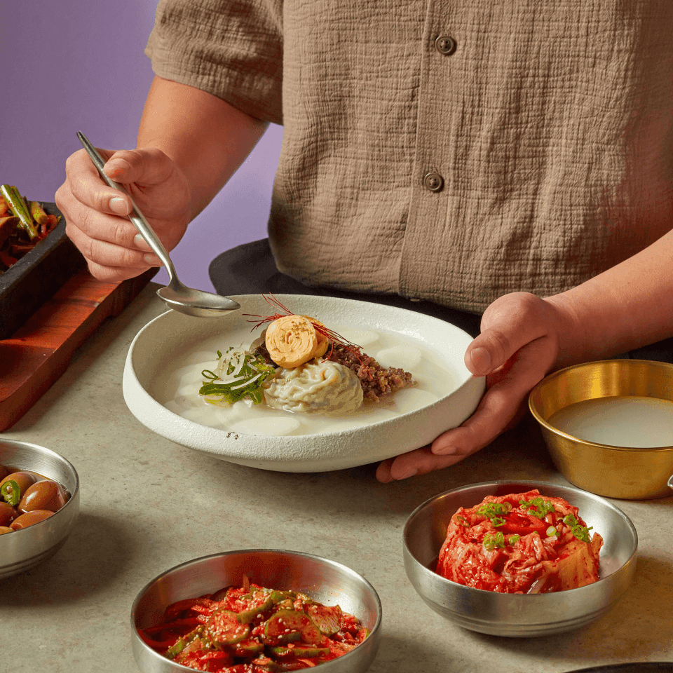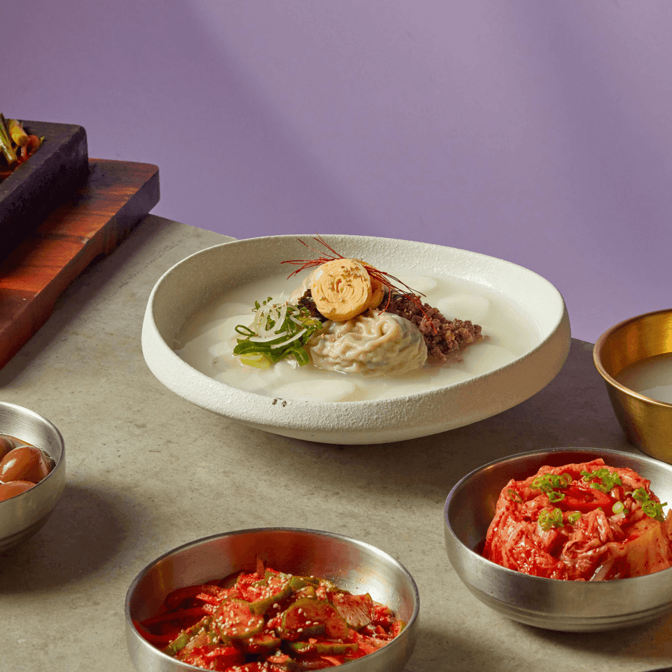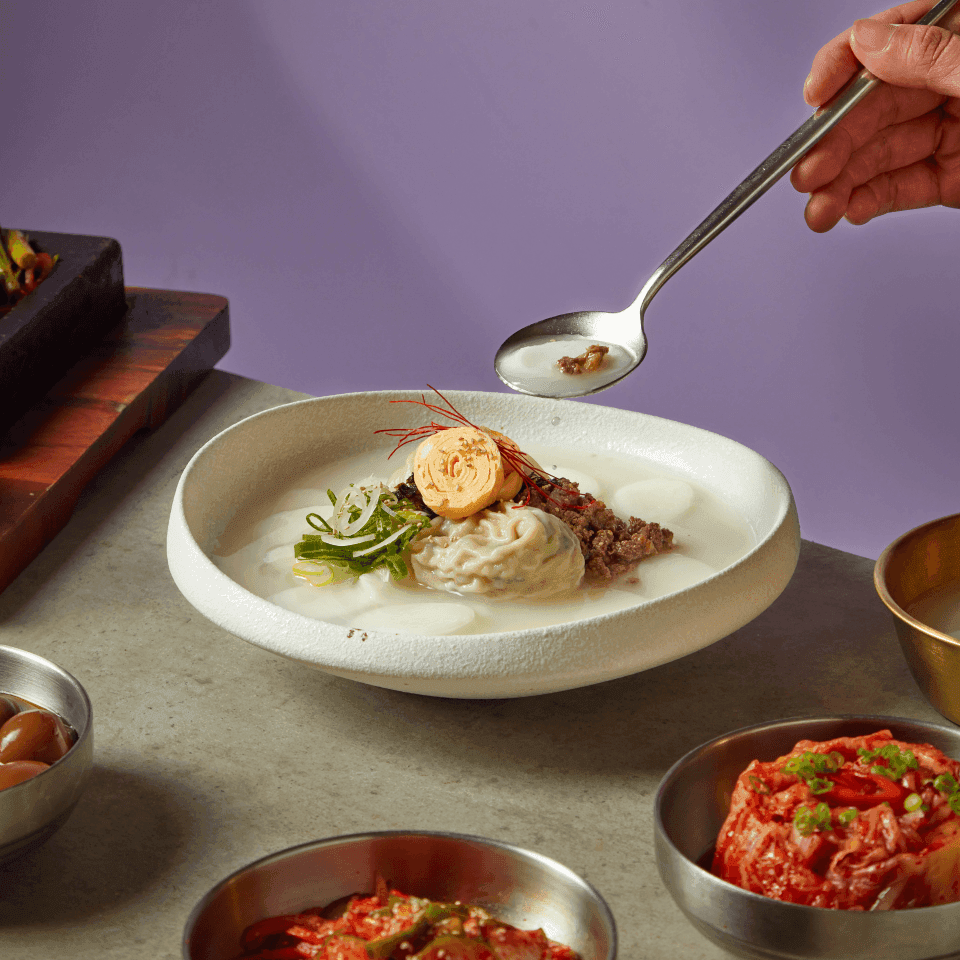 ซากอล ต๊อก มันดู กุก – ซุปข้าวต๊อกและเกี๊ยวหมูในน้ำซุปกระดูกวัวเข้มข้น เสิร์ฟพร้อมเนื้อวากิวชิ้นนุ่มละมุนลิ้นและเกี๊ยวหมูแสนอร่อย ทุกคำคือรสชาติแห่งความเป็นเกาหลีแท้ๆ ที่รังสรรค์โดยเชฟจากประเทศเกาหลีใต้